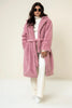Design Detail This coat is a longline plush outerwear piece, perfect for keeping warm while looking effortlessly stylish. It features a luxuriously soft and textured fabric, reminiscent of a cozy sherpa or teddy material, in a classic ivory or cream hue. The coat has a relaxed, oversized fit, complemented by a wide lapel collar that adds a sophisticated touch. The design includes a waist tie belt, offering flexibility to cinch for a defined silhouette or leave open for a casual, laid-back vibe.