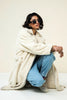 Design Detail This coat is a longline plush outerwear piece, perfect for keeping warm while looking effortlessly stylish. It features a luxuriously soft and textured fabric, reminiscent of a cozy sherpa or teddy material, in a classic ivory or cream hue. The coat has a relaxed, oversized fit, complemented by a wide lapel collar that adds a sophisticated touch. The design includes a waist tie belt, offering flexibility to cinch for a defined silhouette or leave open for a casual, laid-back vibe.