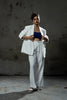 Design Detail An oversized pant crafted from triple georgette fabric — fluid, weighty, and softly structured. The wide-leg silhouette  create effortless movement while maintaining a polished, powerful edge. A statement in quiet luxury and modern tailoring.