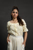 This chikankari top is a timeless blend of elegance and charm. Crafted in delicate white cotton with intricate eyelet embroidery, it features a sweetheart neckline, puffed sleeves, and a scalloped hem. The button-down front and softly flared sleeves add a touch of vintage grace — perfect for effortless, everyday sophistication.