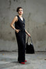 Design Detail A tailored sleeveless waistcoat crafted on a structured crepe fabric. The cropped waistcoat, detailed with luxury gold buttons, brings a refined contrast to the minimalist silhouette. perfect for day-to-night styling.