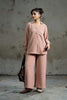 This matching set, crafted from crush georgette fabric, combines effortless elegance with contemporary flair. The shirt features a distinctive button detailing along the front and on the sleeves, adding a touch of sophistication to the flowy, textured fabric. The lightweight, slightly crinkled georgette drapes beautifully, creating a stylish and comfortable ensemble perfect for both casual and semi-formal occasions.