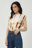 Casually spillin' the sass, our tank top features a crew neckline with a relaxed fit The abstract tie dye running print just adds to the perfect sassy character of the top giving it more life . The elasticized hem also accentuates the waist with oversized padded shoulders,